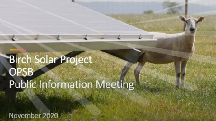 We’ve pre-recorded the information presentation for the Birch Solar OPSB Public Information Meeting and uploaded it here – please watch to find out more about this project.